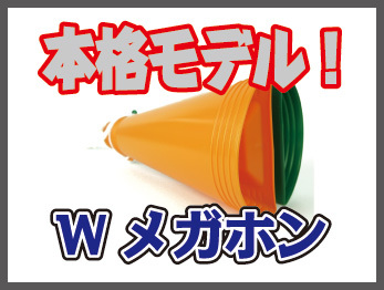 両手に持って様々な応援ができる「ツインメガホン」、小さめで携帯しやすいコンパクトメガホン」等々チームカラーに合わせてお選びできます。