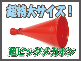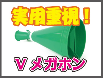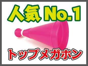 応援メガホンの中でも一番人気の「トップメガホン」をはじめ、遠くまで歓声が響き渡る超ビッグサイズの「ビッグメガホン」や、たたくことで大きな音の出る「Vメガホン」と「Wメガホン」